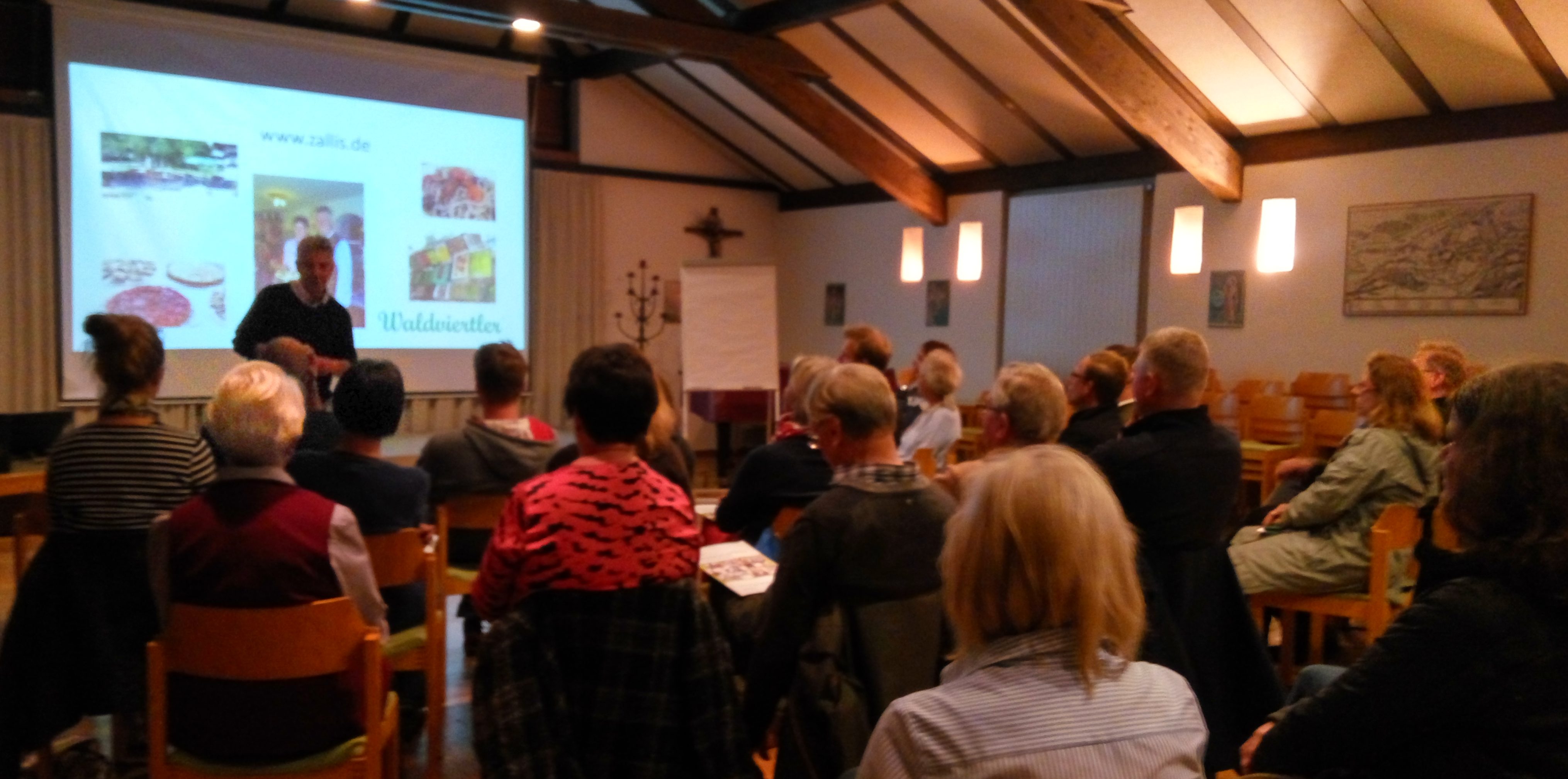 Im sehr gut besuchten Pfarrsaal Berchtesgaden brachte Franz Galler den Anwesenden die Ansätze der Gemeinwohlökonomie näher und stellte ganz praktische Wege vor, diese in die Tat umzusetzen.