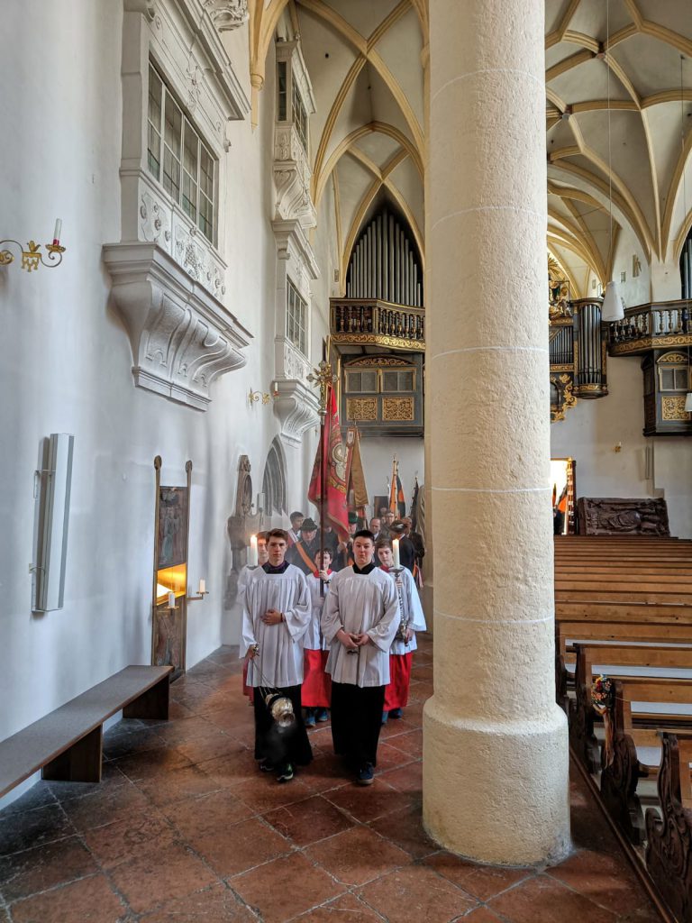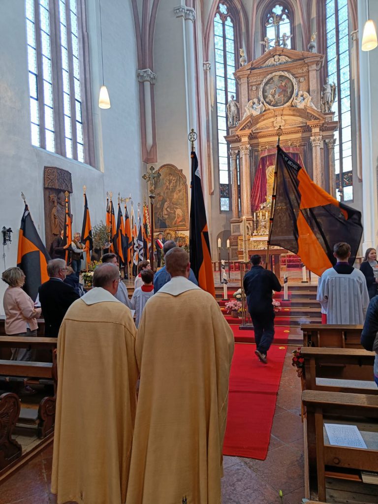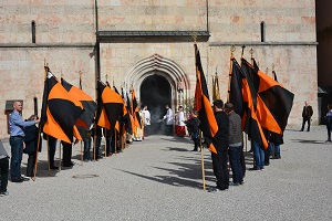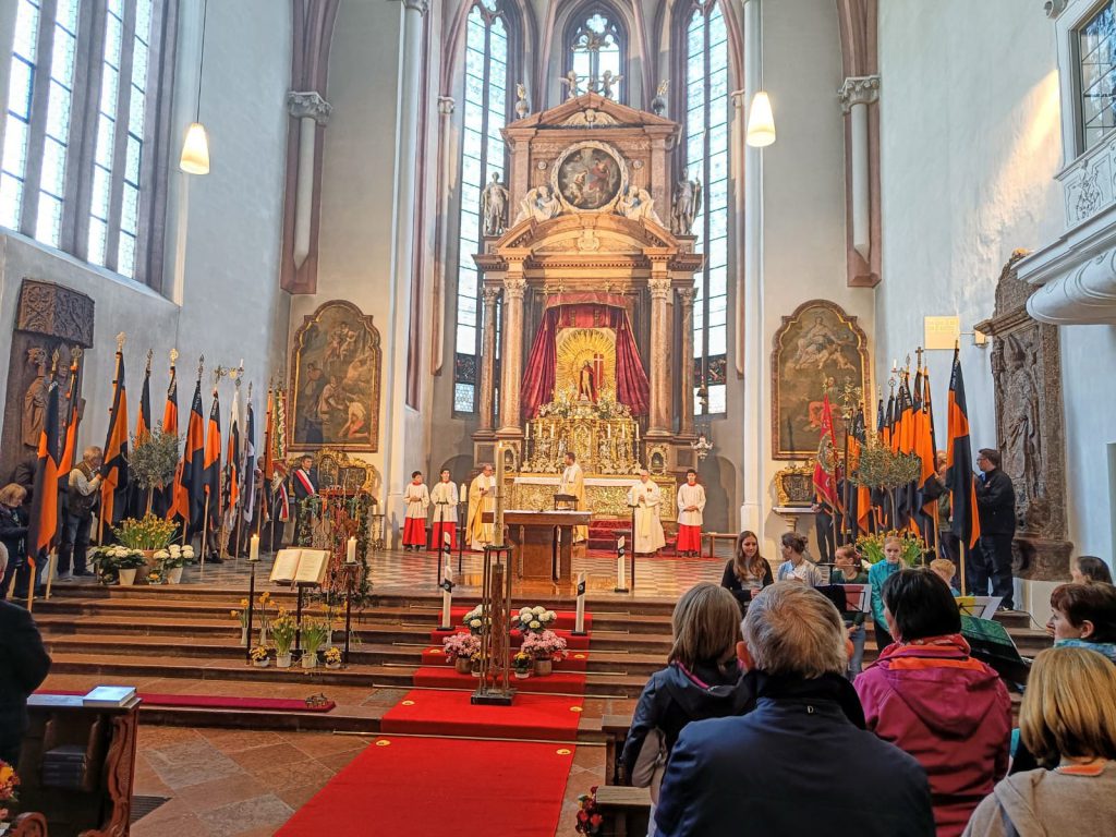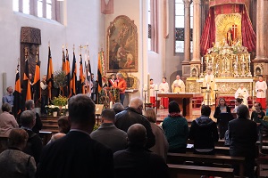 Nach Anträgen und Regularien wurde auf anstehende Veranstaltungen hingewiesen. Mit einem Gottesdienst endete die Diözesanversammlung. Für den beeindruckenden Ein- und Auszug in die Stiftskirche hatten die Kolpingsfamilien ihre Banner mitgebracht. Die Kommission Spiritualität hatte – passend zum Thema „Leitbild“ – Leitpfosten mit Reflektoren um den Altar aufgebaut. Diözesanpräses Christoph Wittmann hob in seiner Predigt hervor, dass das Leitbild reflektiert, was Christus uns in seinem Wort verkündet hat und was Vorbilder wie Adolph Kolping daraus für eine sozialere und menschlichere Gesellschaft abgeleitet haben.