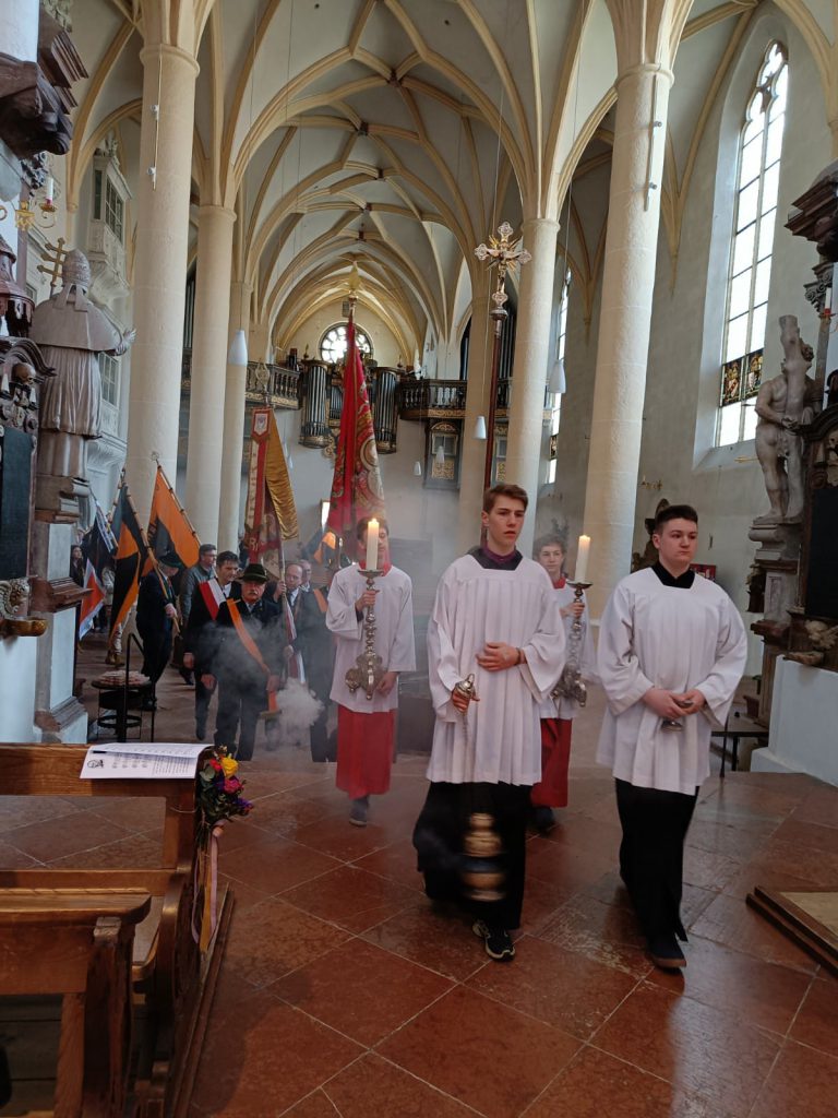 Die Messfeier wurde musikalisch von Mitgliedern der Kolpingjugend unter der Leitung von Verena Seeber gestaltet, als Konzelebranten feierten Horst Kress und Thomas Frauenlob den Gottesdienst mit den Kolpinggeschwistern.