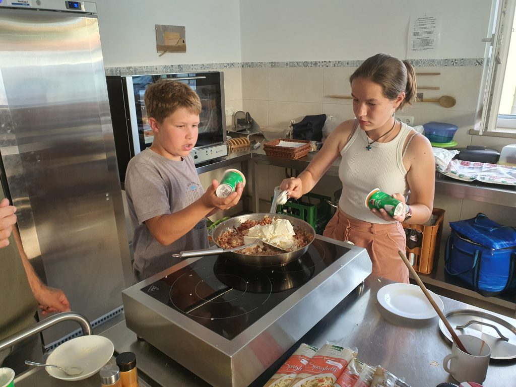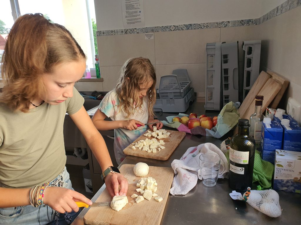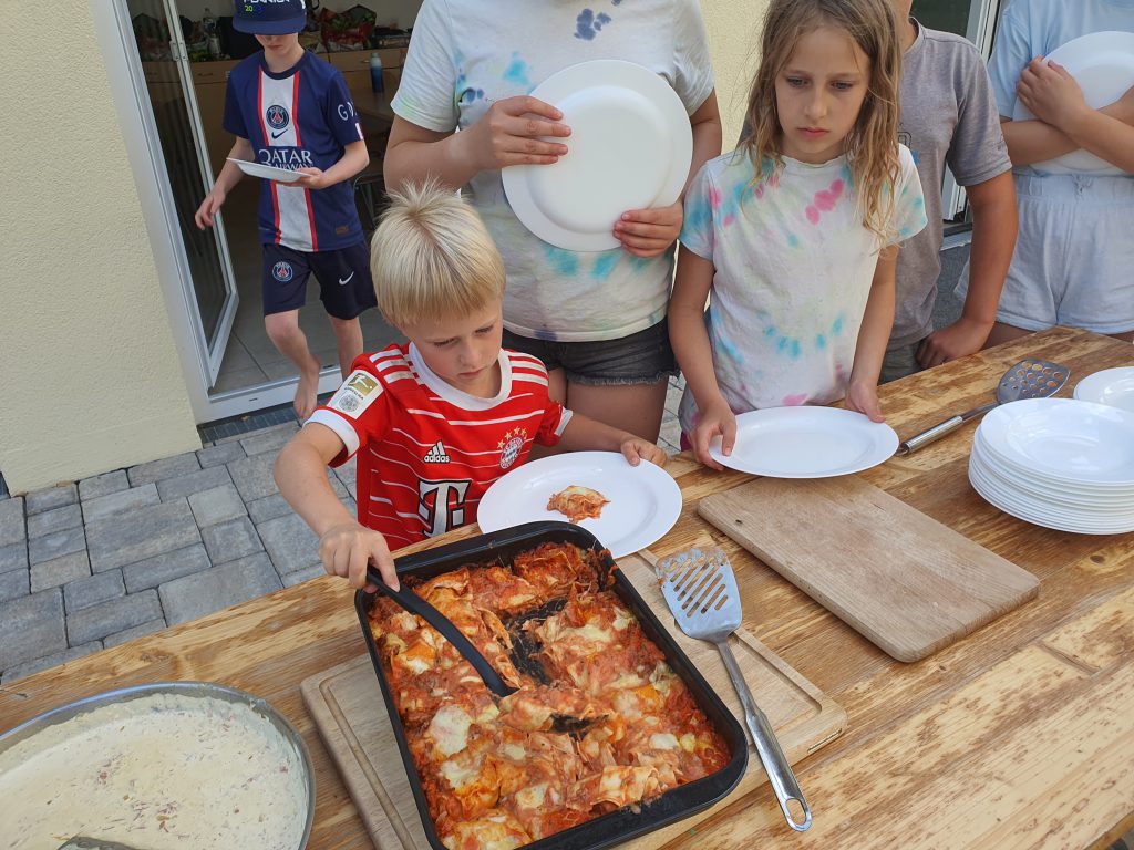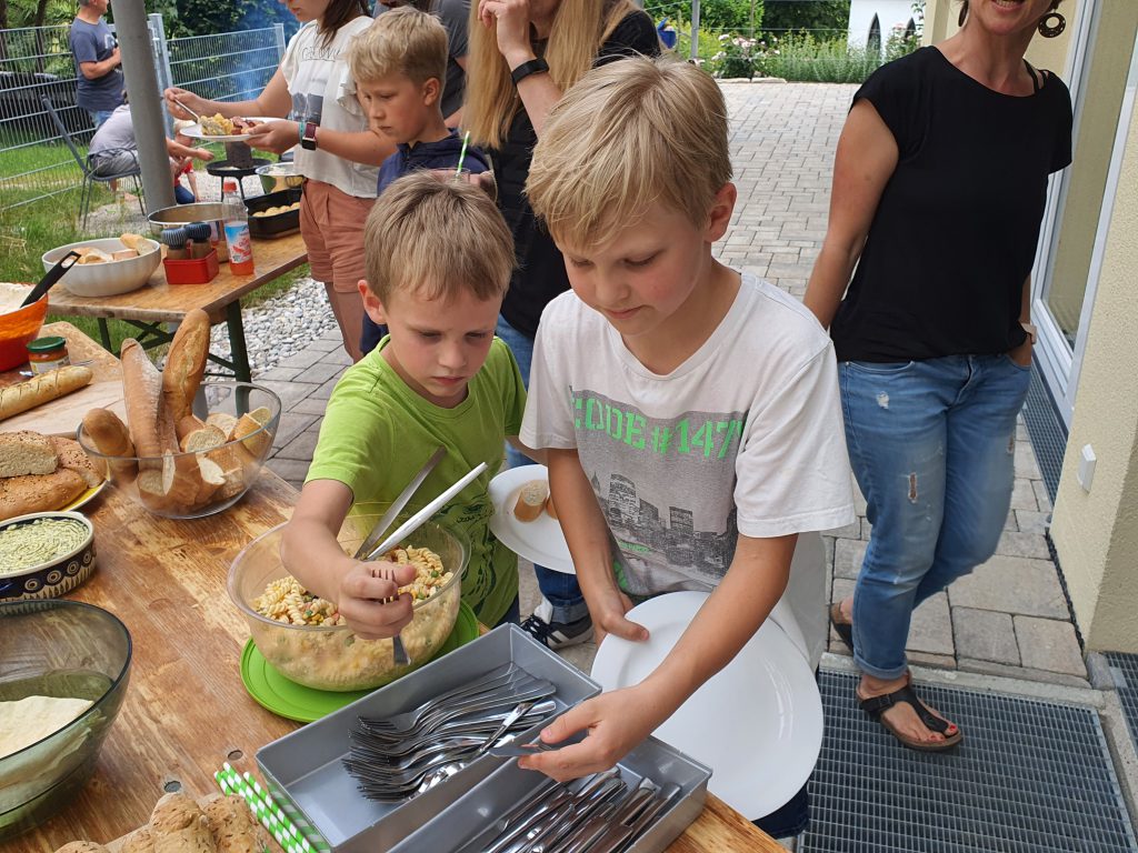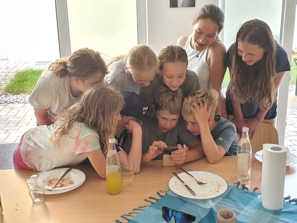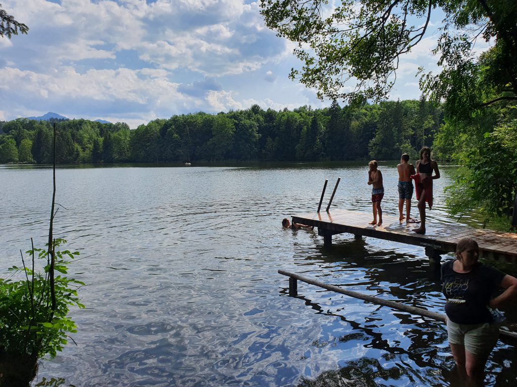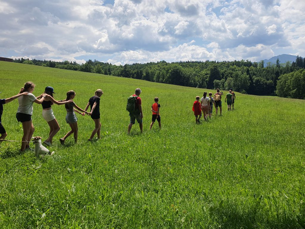 „Das müssen wir wieder machen!“, so ein Zitat einer Tochter bei der Heimfahrt. Was hatten die Familien alles erlebt? Am Freitag machten sich 9 Familien aus dem Talkessel auf, um im Marwanger Nepomuk-Huber-Haus ein Wochenende gemeinsam zu verbringen. Beim Grillen und dem anschließenden gemeinsamen Spielen lernten sich die über 30 Teilnehmer*innen kennen. Während die Kinder sich bei Kicker und Tischtennis vergnügten, versammelten sich die Eltern im Anschluss am Lagerfeuer. Nach einer kurzen Nacht und einem Morgenimpuls stand das Spiel „Familie ärgere dich nicht“ auf dem Programm. Dazu mussten die Familien während einer mehrstündigen Wanderung unterschiedliche Aufgaben lösen. Die Aufgaben, sei es das Singen eines Liedes, die Anfertigung eines Gruppenfotos, sportliche Tests oder Geschicklichkeitsaufgaben wurden mit Bravour gemeistert. Zurück im Selbstversorgerhaus freuten sich alle auf ein erfrischendes Bad im nahegelegenen Tüttensee. Das italienische Abendessen bereiteten verschiedene Kindergruppen vor und zeigten, dass sie schon selbstständig verschieden Gericht zubereiten können. Die Eltern genossen Pasta, Lasagne und Pizzaknödel. Am Lagerfeuer wurden dann, begleitet von Gitarrenklang, alte Gassenhauer gesungen. Der Abend endete mit einer Meditation. Die Kinder hatten dazu Naturmaterialien gesammelt und gestalteten daraus ein Mandala. Beim Gottesdienst am Sonntag stand der Adler im Mittelpunkt. Die Familien überlegten, wo sie sich getragen und geborgen fühlen. Gestärkt, wenn auch müde machten sich dann die Familien auf den Heimweg oder genossen noch ein Bad im See. Damit endete ein rundum gelungenes Wochenende.