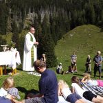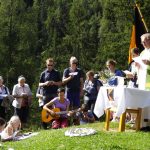Zum ersten Mal machten sich in diesem Jahr vier Familien in Form einer kleinen Wallfahrt auf den Weg zum traditionellen Bindalm-Gottesdienst der Kolpingsfamilie Berchtesgaden. In vier Stationen beschäftigten sich die Kinder und Erwachsenen nicht nur mit dem Sonntagsevangelium, sondern erlebten auch auf spielerische Art, wie Gemeinschaft tragen kann. Natürlich durfte eine wohlverdiente Brotzeit nicht fehlen. Den Abschlussgottesdienst, den Präses Frauenlob auf der Bindalm zelebrierte, wurde musikalisch und mit Fürbitten von den Wallfahrern bereichert.