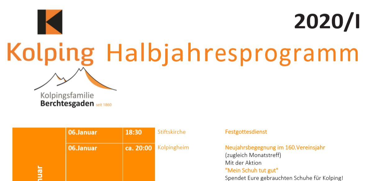 Neues Halbjahresprogramm ist fertig 11. Dezember 2019 | Keine Kommentare [embeddoc url=“https://www.kolpingsfamilie-berchtesgaden.de/wp-content/uploads/2019/12/Halbjahresprogramm_2020-1.Hj-V1.3_A3-Plakat-1.pdf“ download=“all“] 1,119 total views, 1 views today Aktivitäten