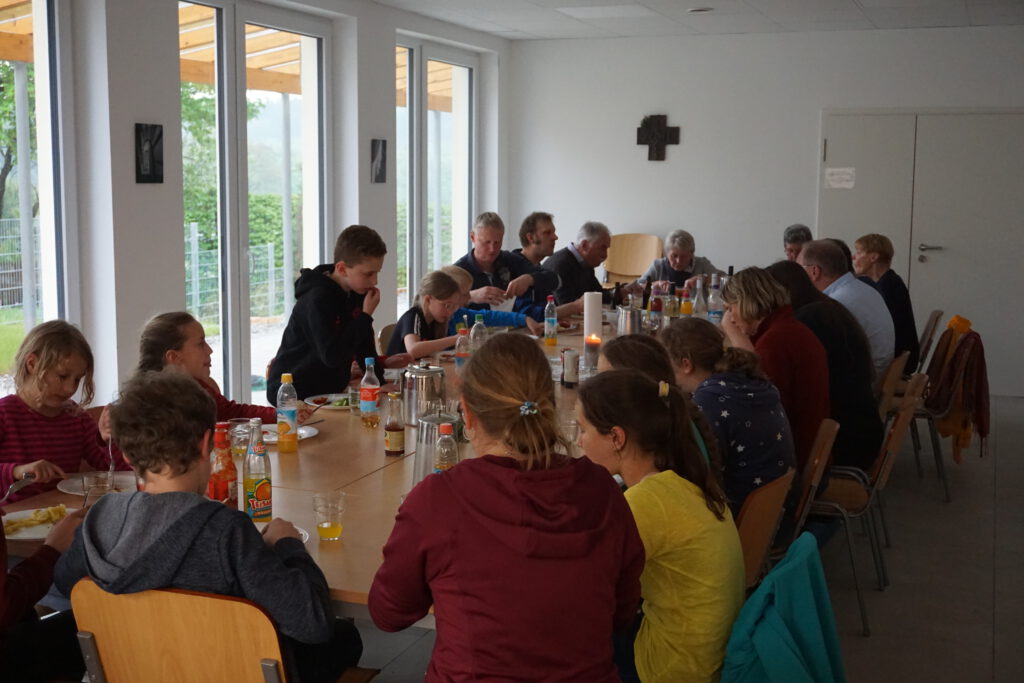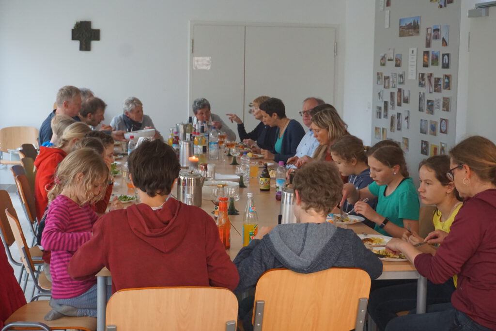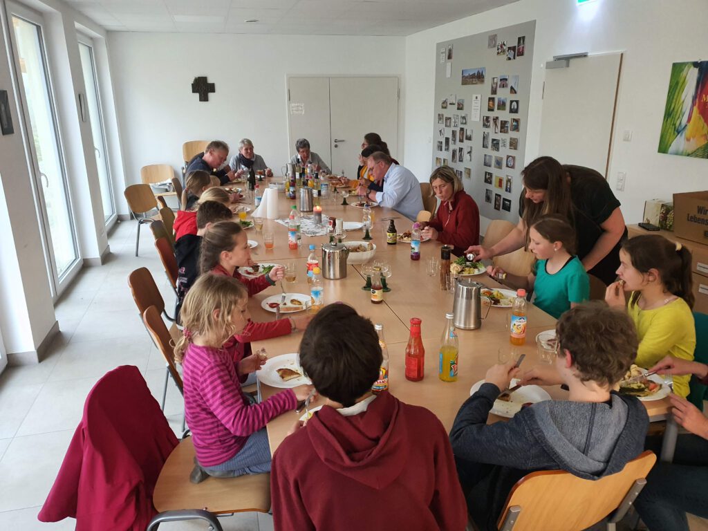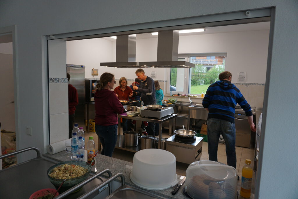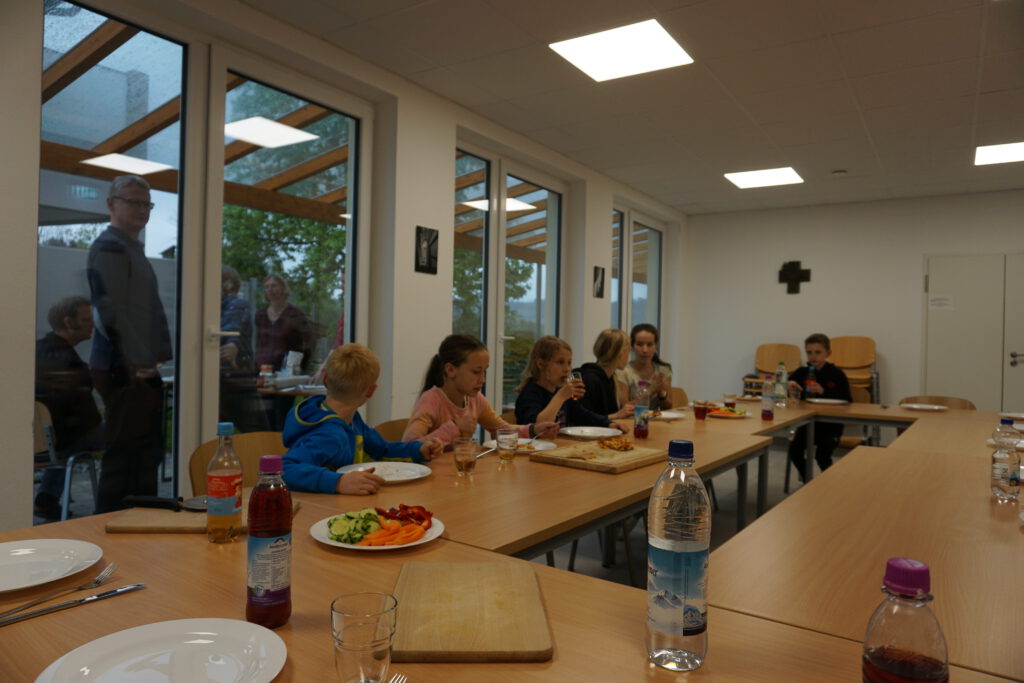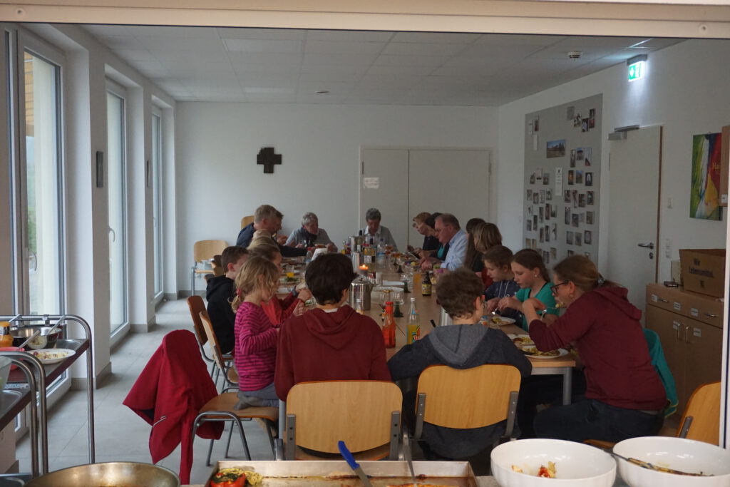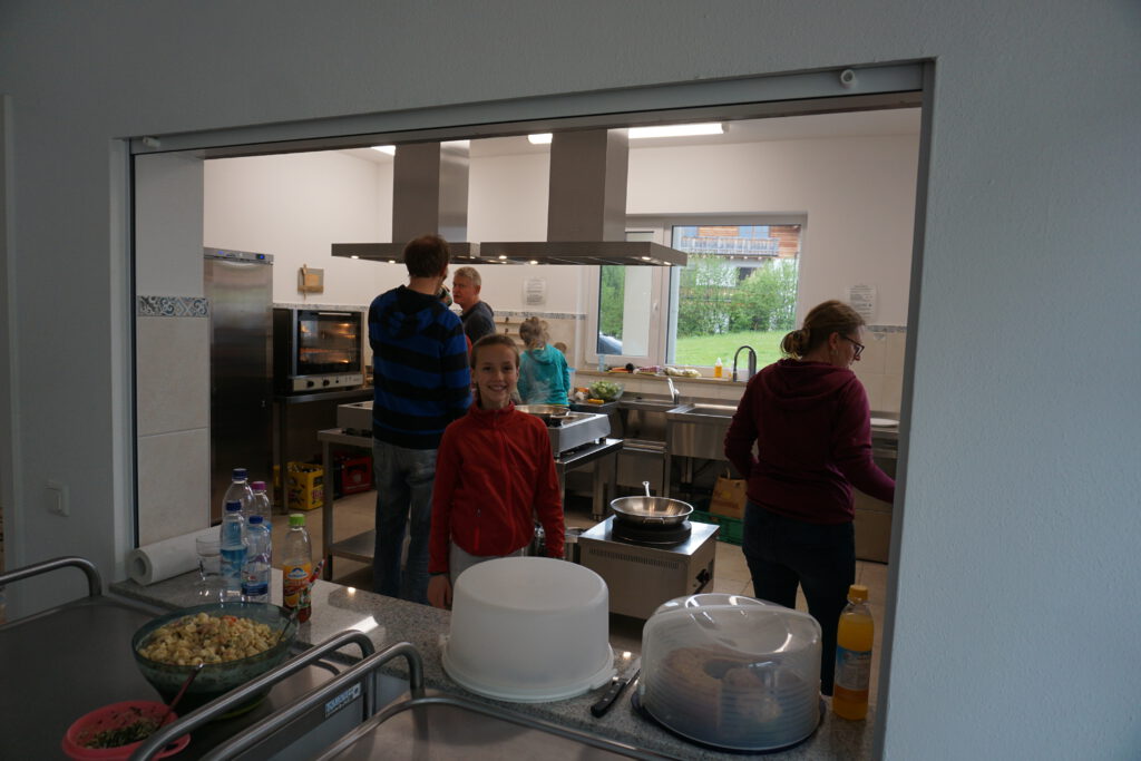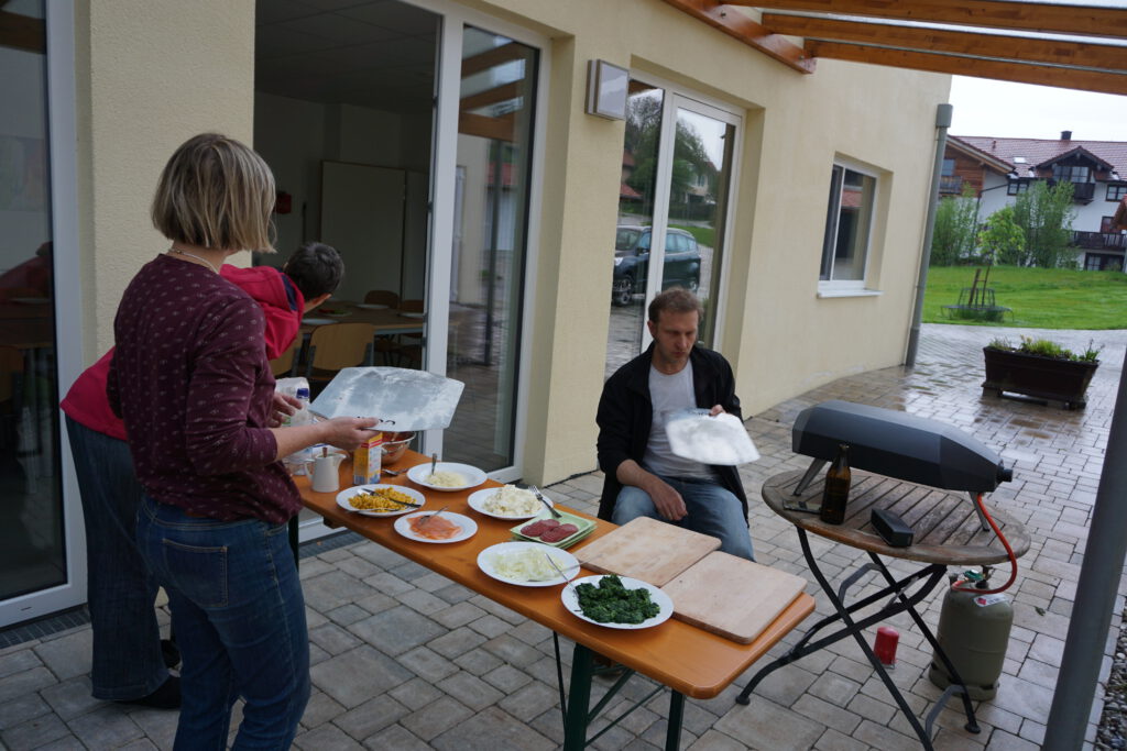 Das schlechte Wetter machte den Familien nicht viel aus. Es wurde viel gespielt, Pizza gebacken, eine kleine Wanderung um den See unternommen und gegrillt. Präses Thomas Frauenlob kam mit einer Gruppe Senioren zum Abendessen vorbei. Uschi Erl, ehemalige Gemeindereferentin und jetzige Chefin des Hauses, berichtete allen von der Geschichte des neuen Selbstversorgerhauses. Zusammen mit ihrer Schwester hat sie ihr Erbe in den Bau gesteckt und eine Stiftung gegründet, die es Kinder- , Familien- und Jugendgruppen ermöglicht, zu günstigen und idealen Bedingungen eine gemeinsame Zeit miteinander zu verbringen.