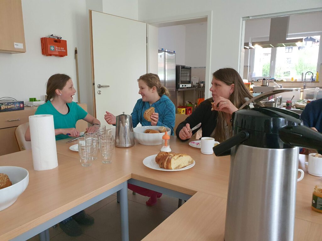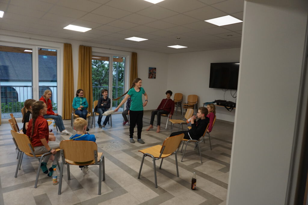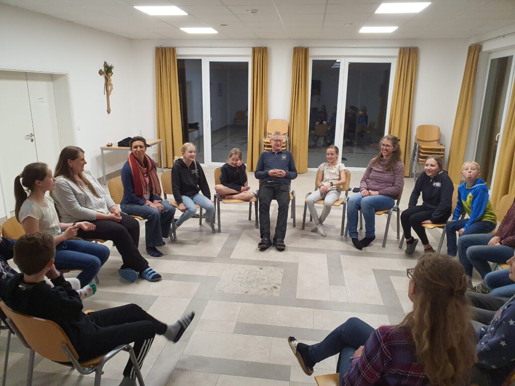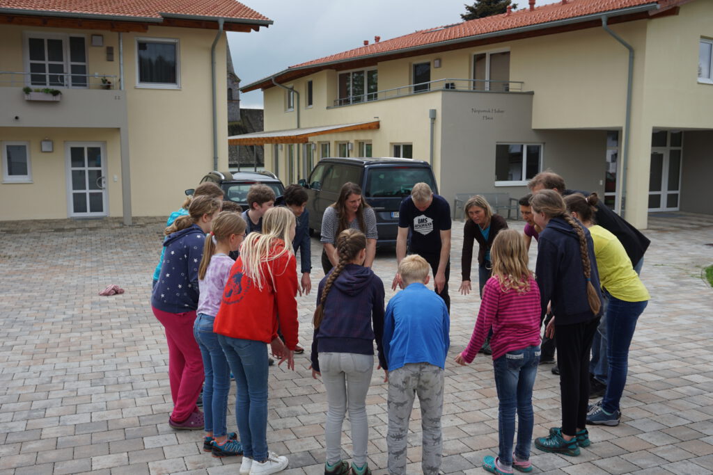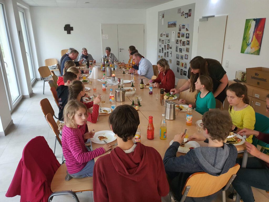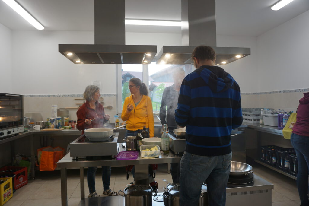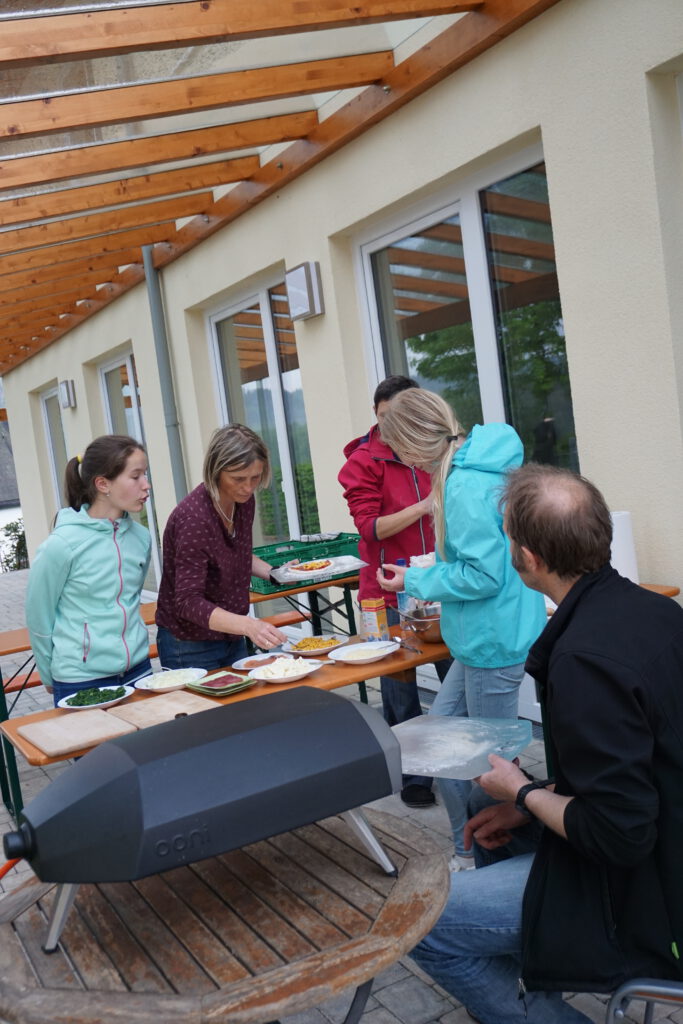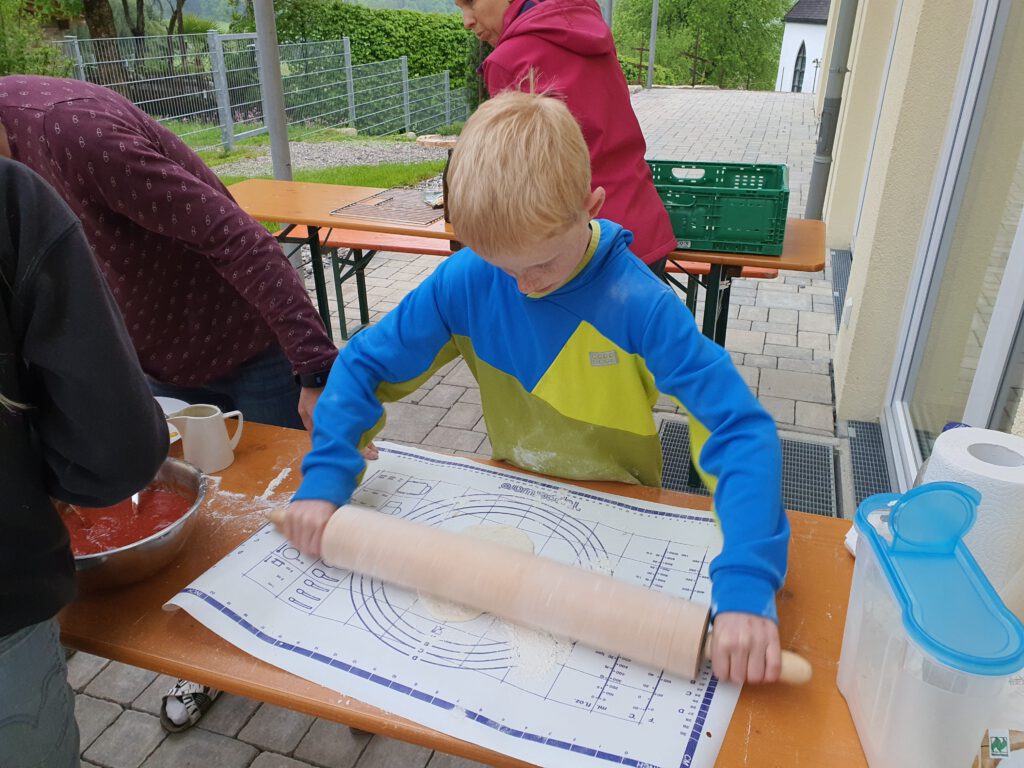 Das schlechte Wetter machte den Familien nicht viel aus. Es wurde viel gespielt, Pizza gebacken, eine kleine Wanderung um den See unternommen und gegrillt. Präses Thomas Frauenlob kam mit einer Gruppe Senioren zum Abendessen vorbei. Uschi Erl, ehemalige Gemeindereferentin und jetzige Chefin des Hauses, berichtete allen von der Geschichte des neuen Selbstversorgerhauses. Zusammen mit ihrer Schwester hat sie ihr Erbe in den Bau gesteckt und eine Stiftung gegründet, die es Kinder- , Familien- und Jugendgruppen ermöglicht, zu günstigen und idealen Bedingungen eine gemeinsame Zeit miteinander zu verbringen.
