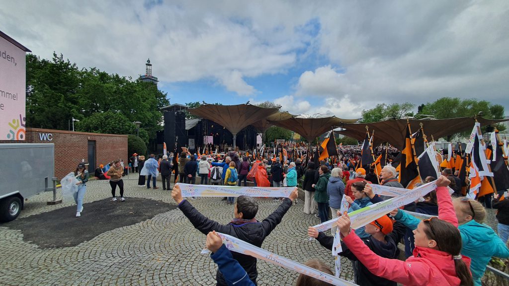 Die Feierlichkeiten begannen am Freitagabend mit einer großen Eröffnungsveranstaltung im Kölner Tanzbrunnen, Kölns bekanntester Bühne für Open-Air-Veranstaltungen. Moderiert von Guido Cantz und Yvonne Willicks, bot die Show zahlreiche Acts aus der bunten KOLPING-Welt. „Die Atmosphäre war überwältigend – tausende Menschen in Orange versammelt, mit Blick auf das Kölner Stadtpanorama und den Dom“, berichtete ein begeistertes Mitglied der Berchtesgadener Gruppe.