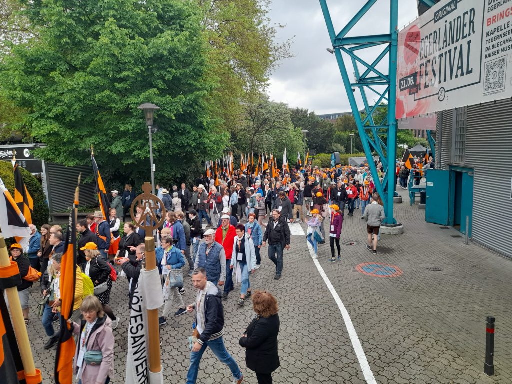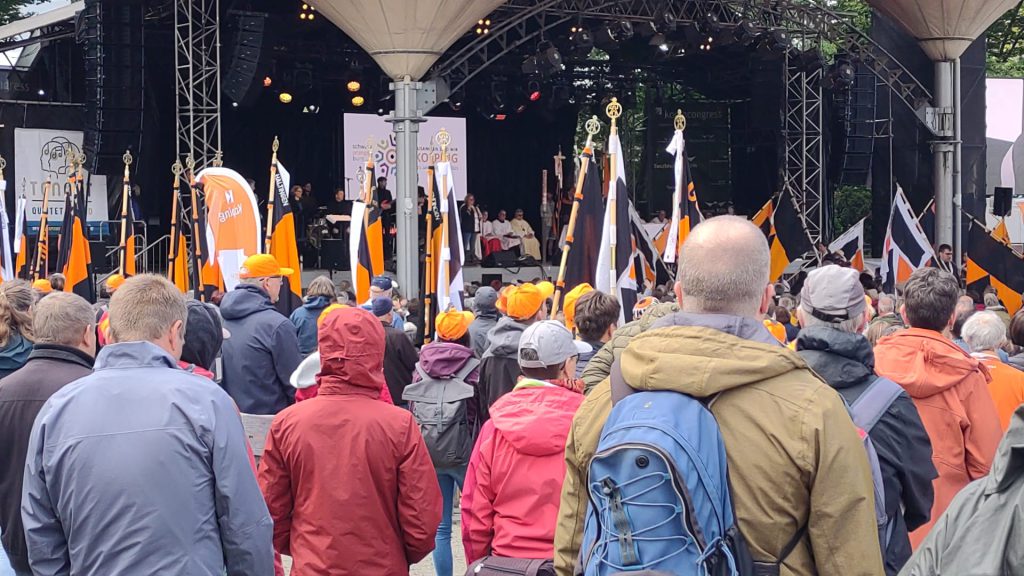 Den spirituellen Höhepunkt bildete der Festgottesdienst am Sonntagvormittag im Tanzbrunnen. In seiner Ansprache betonte Generalpräses Christoph Huber die zeitlose Botschaft Adolph Kolpings: „Auch nach 175 Jahren ist unser Auftrag aktueller denn je – in einer Welt, die nach Zusammenhalt und Solidarität sucht, sind wir aufgerufen, Verantwortung zu übernehmen und uns für eine gerechte Gesellschaft einzusetzen.“